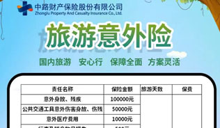 中路保险旅游意外险:国内旅游 安心行 保障全面 方案灵活。
